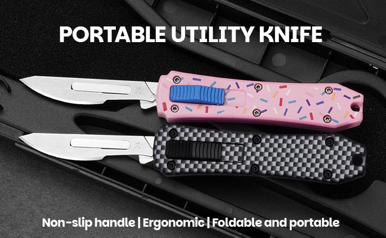 EDC Pocket Knife, Folding Utility Knives with Clip, Retractable Box Cutter, Small Scalpel Knife with 10pcs Razor Sharp Surgical Carbon Steel Replacement Blades #24, EDC Knives for Men Women